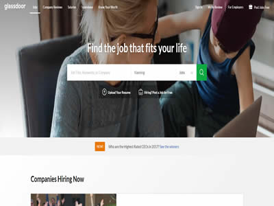 GlassDoor是增长最快的求职招聘网站之一。网站拥有数以百万计的公司评论,薪资报告,面试评论和问题,福利评估,办公室照片等信息。